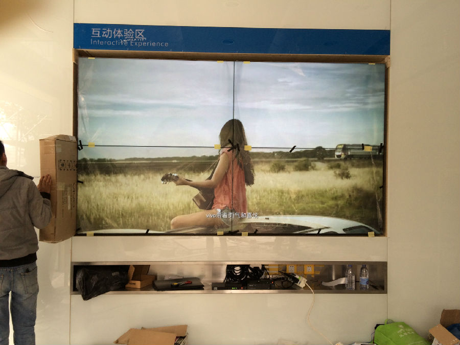 此項(xiàng)目采用LG 55寸原裝液晶拼接屏4臺(tái),主要展示品牌實(shí)力和客戶進(jìn)店的體驗(yàn)感